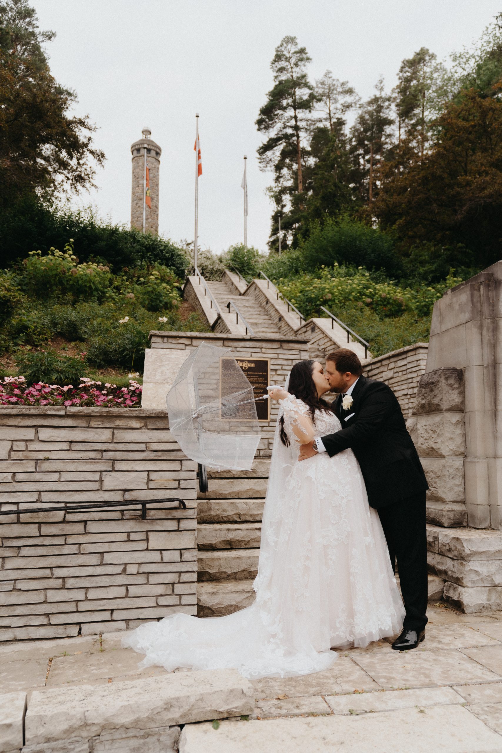 Couples considering an indoor-outdoor blend for their Terrace Banquet Centre Concord wedding will appreciate the charming gazebo outside. Maria and Michael enjoyed some quiet post-ceremony portraits here, surrounded by greenery and warm natural light—a peaceful touch before the celebration kicked into full swing.