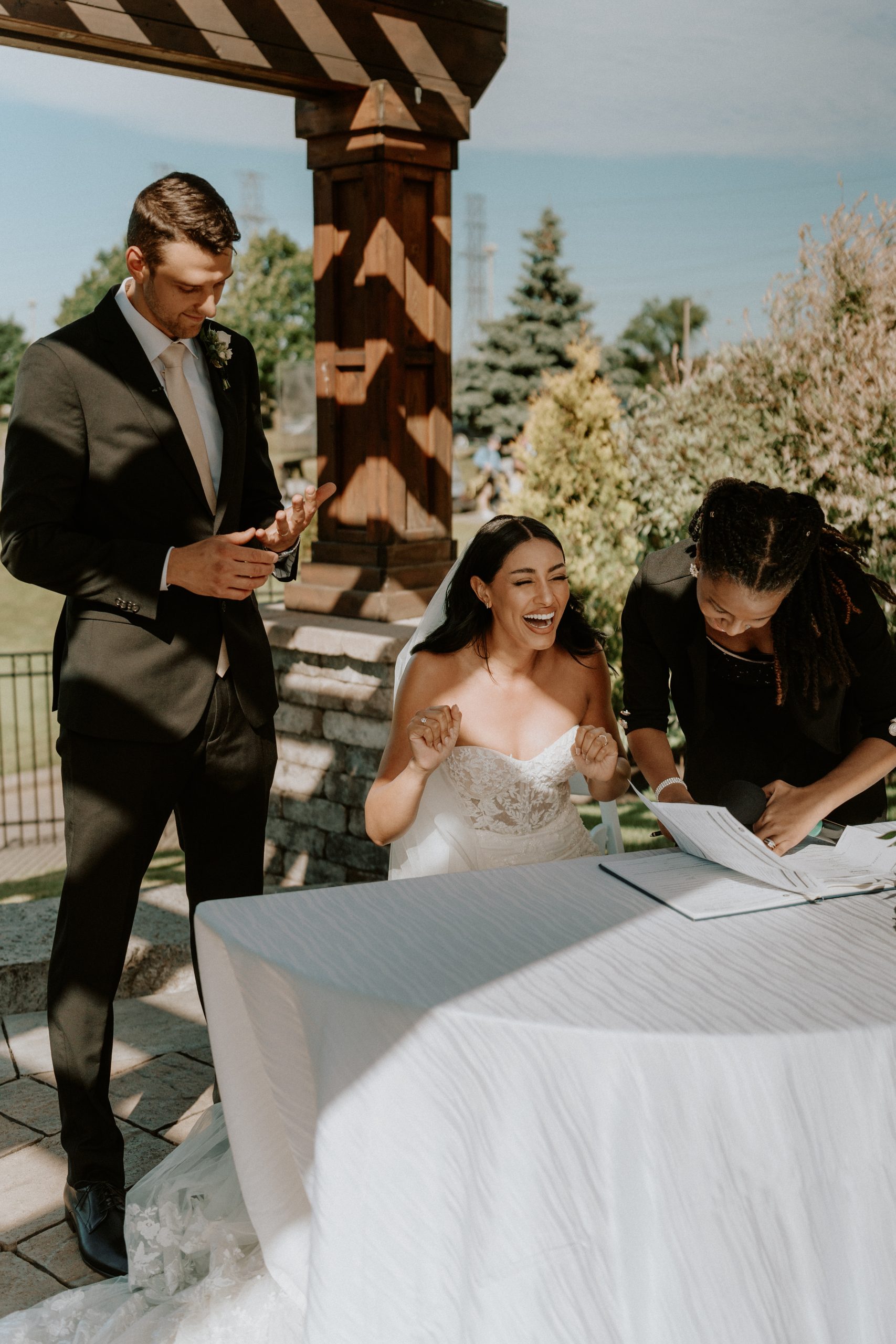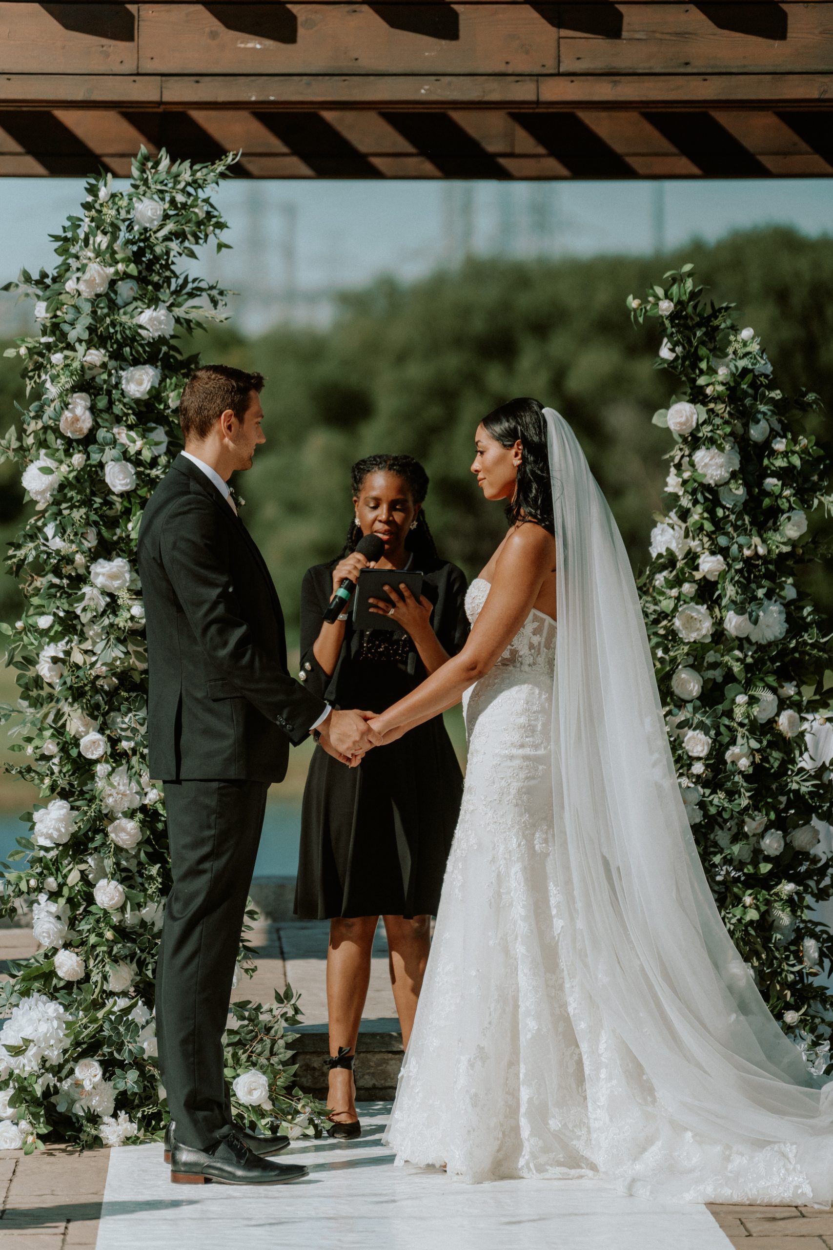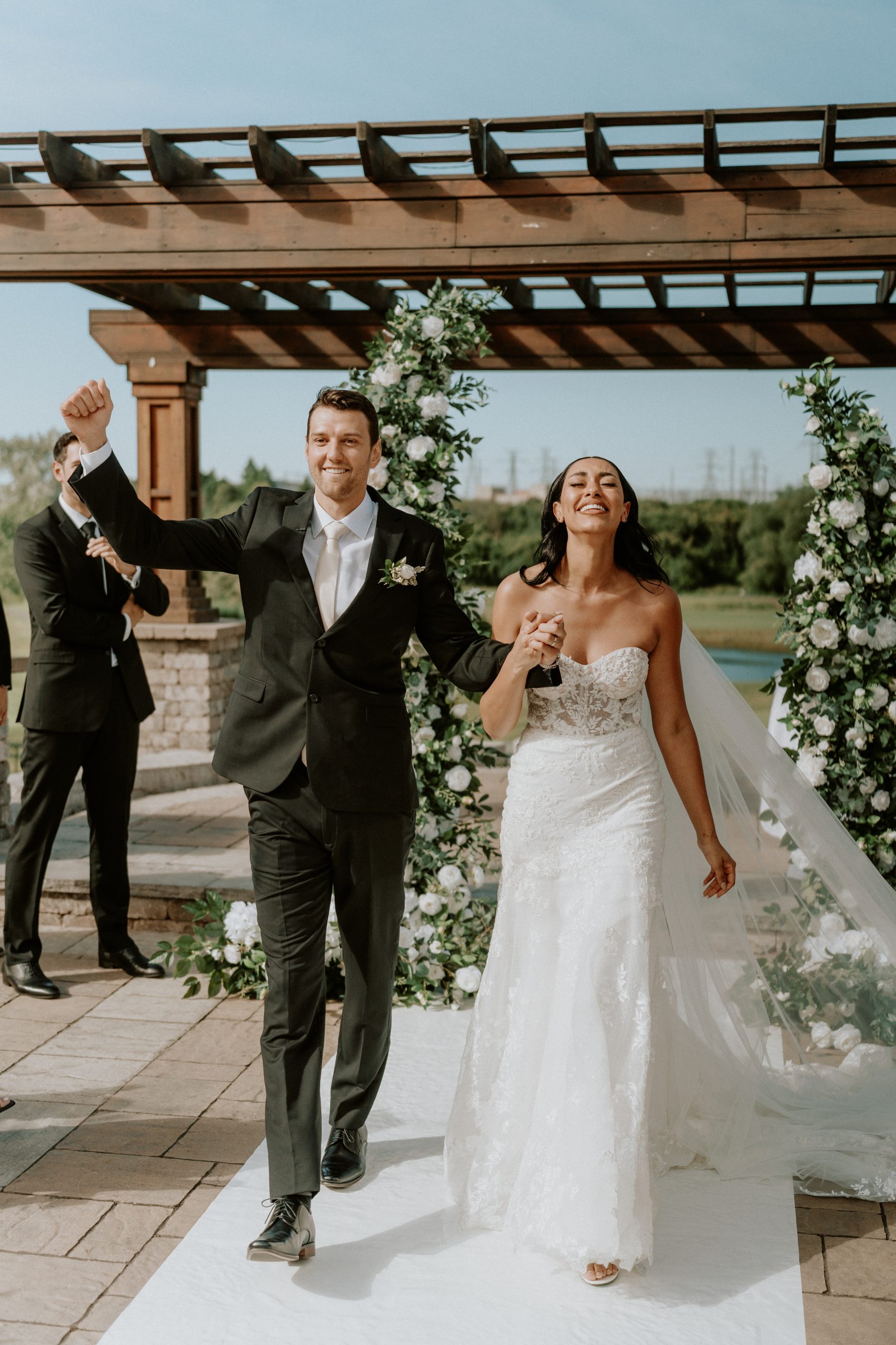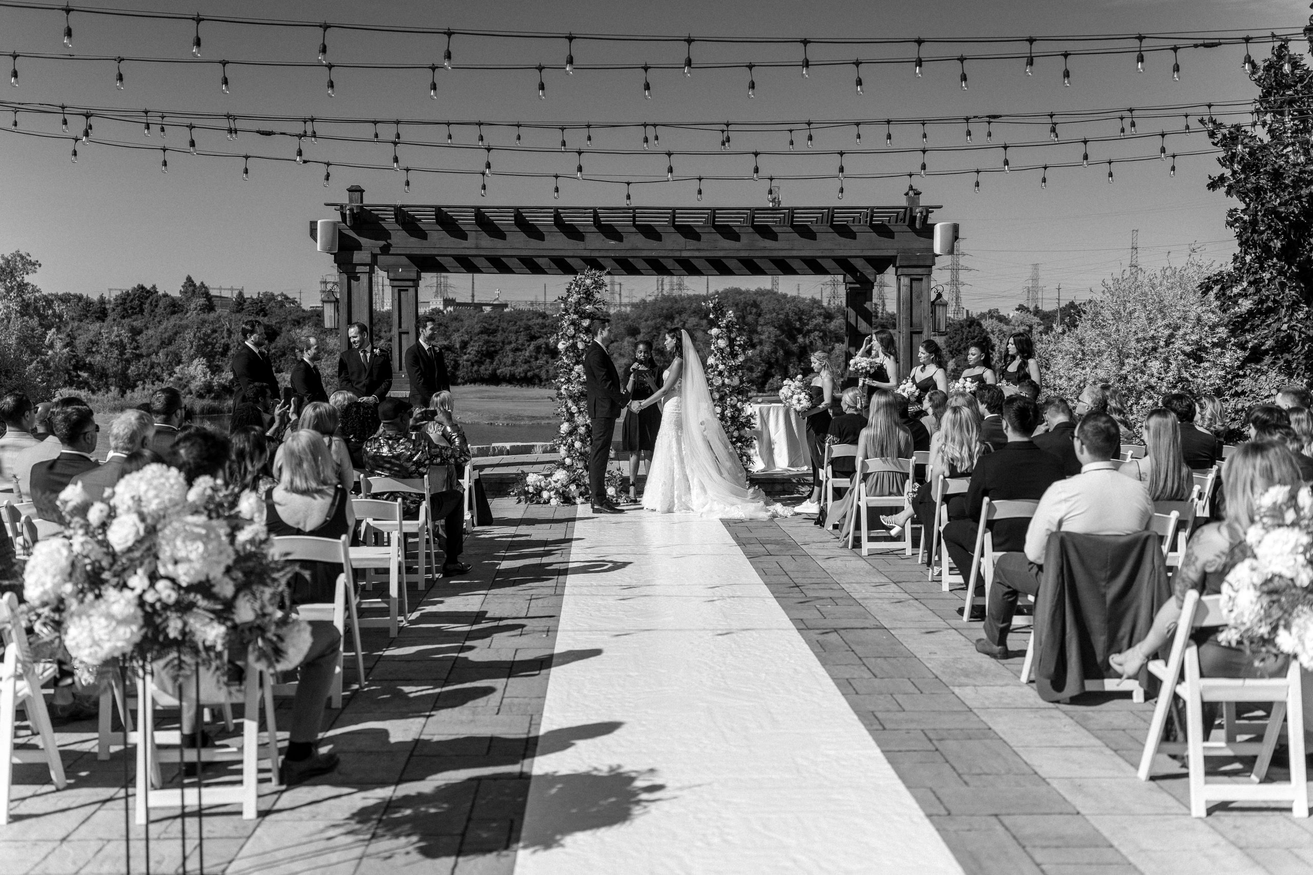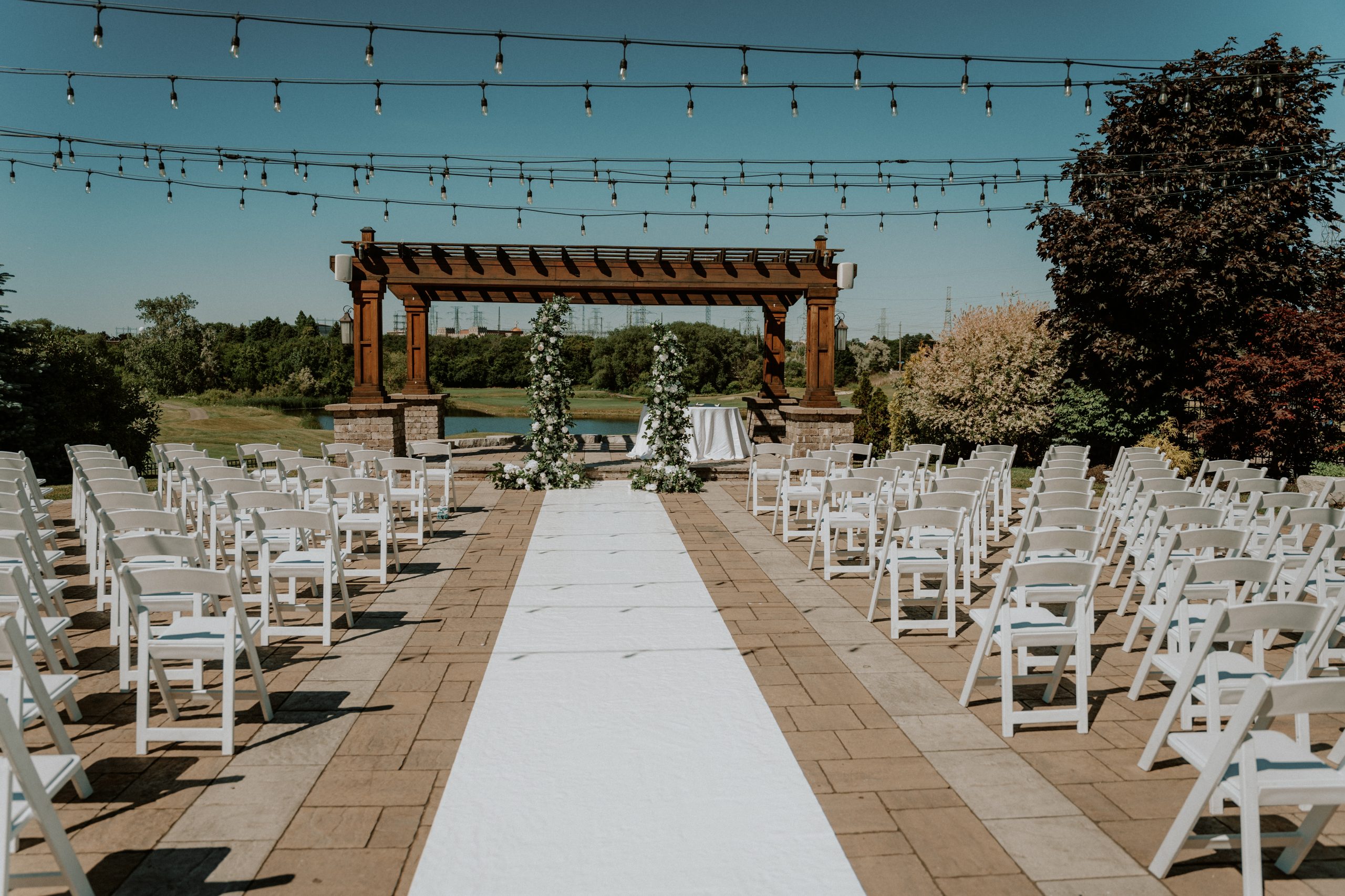 The venue’s 5,000 sq ft outdoor patio is one of its most sought-after features. Overlooking lush greens and framed by a cedar gazebo, it’s ideal for open-air ceremonies or cocktail receptions. Tianna and Thomas exchanged vows here under golden sunlight, surrounded by family and friends — a scene that was as cinematic as it was heartfelt.